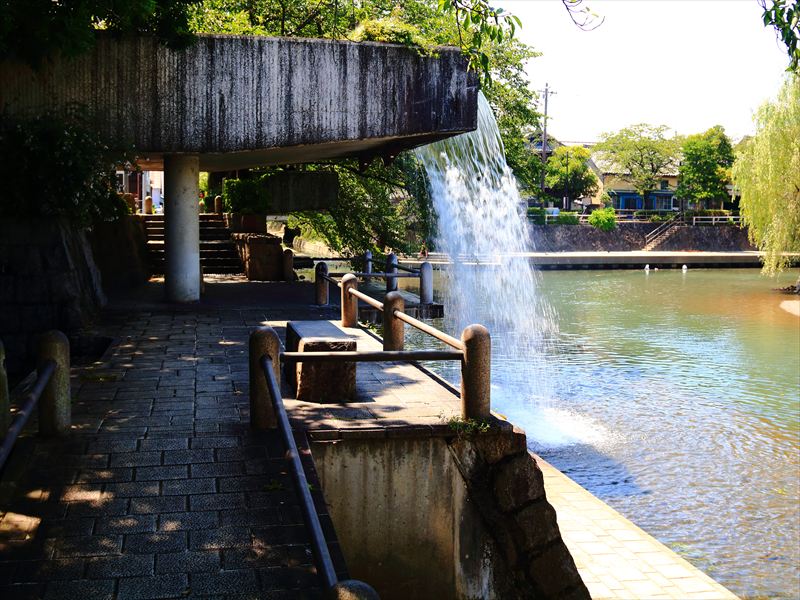 水の都大垣市としてのイメージで水門川とまさかのエヴァ初号機。